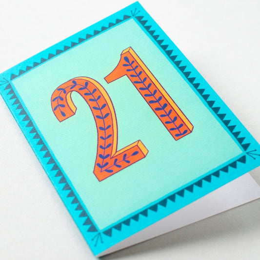Happy 21st Birthday Blue & Mint Green Greetings Card